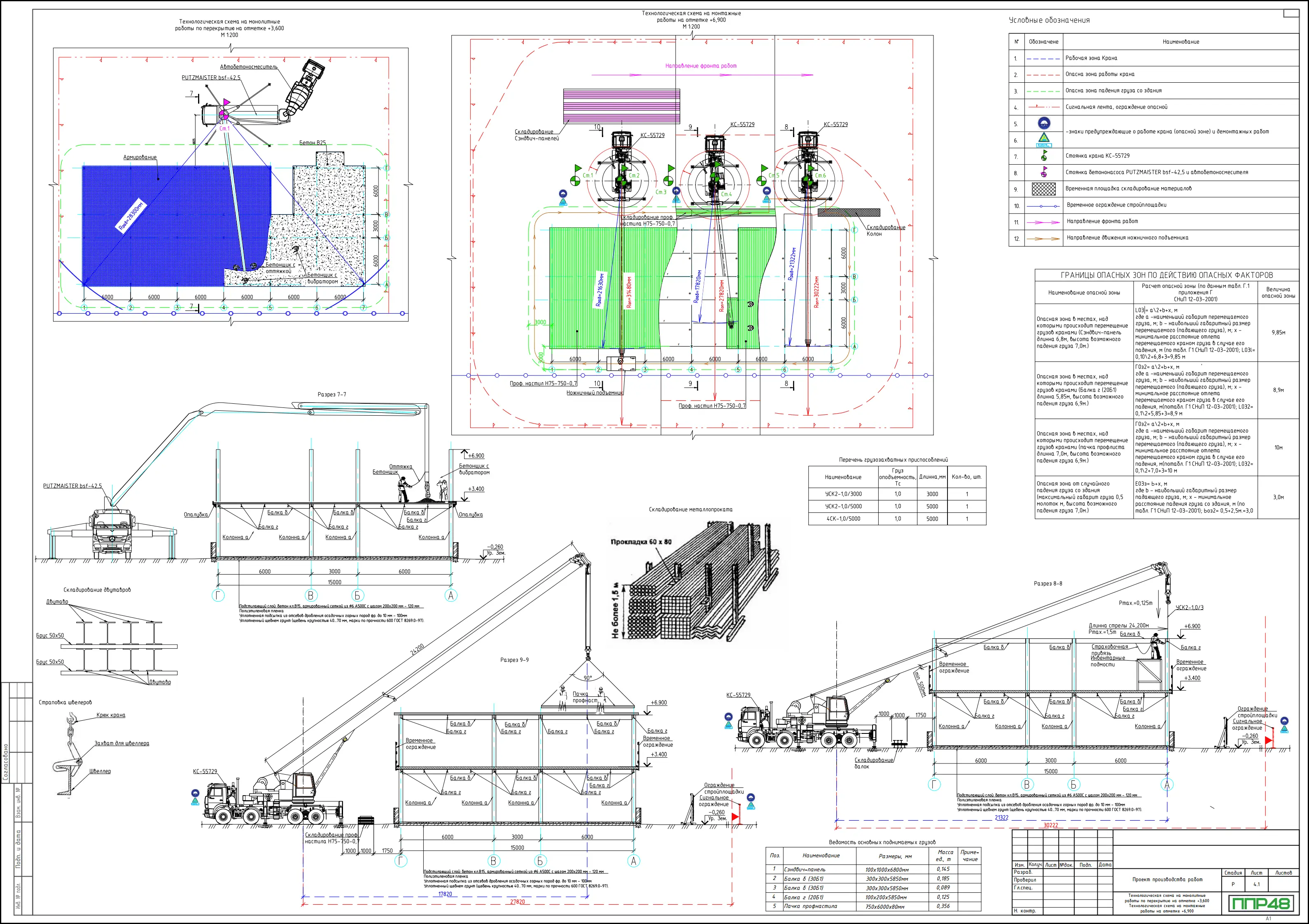 Этапы подготовки и проведения работ на стройплощадке включают подготовительный период, разработку плана работ и полный набор исполнительной документации. В составе ППР на подготовительный период учитываются новости отрасли, требования к защите окружающей среды и охране труда, а также спецификаций по монолитным и монолитно-монтажным работам. Для безопасного проведения работ на высоте и внутри помещений предусмотрены регламенты по применению слаботочных систем, а также по размещению оборудования и материалов на участке.